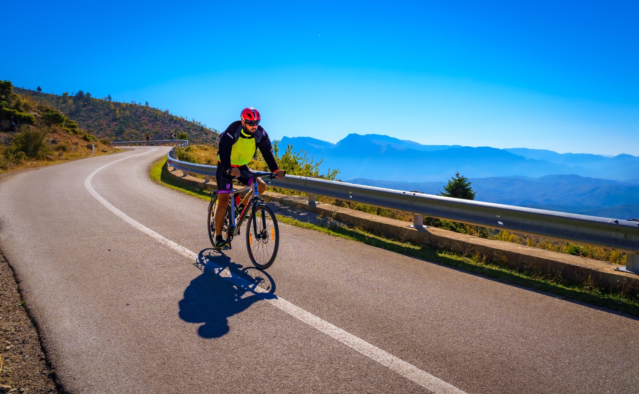 Here it is—the most beautiful, varied, and challenging day of the tour. We climb steadily through forests and gorges, passing old villages en route to Albania’s most iconic beaches: Jale and Dhërmi. In the distance, the extraordinary Llogara Pass comes into view, where a gradual ascent awaits, framed by breathtaking mountain vistas above the Ionian Sea. At the summit, we descend into Llogara National Park, ending the day in Rradhimë at one of the region’s most renowned hotels. Unwind by the sea with a mojito in hand, watching the sunset over the Albanian Karaburun Peninsula.