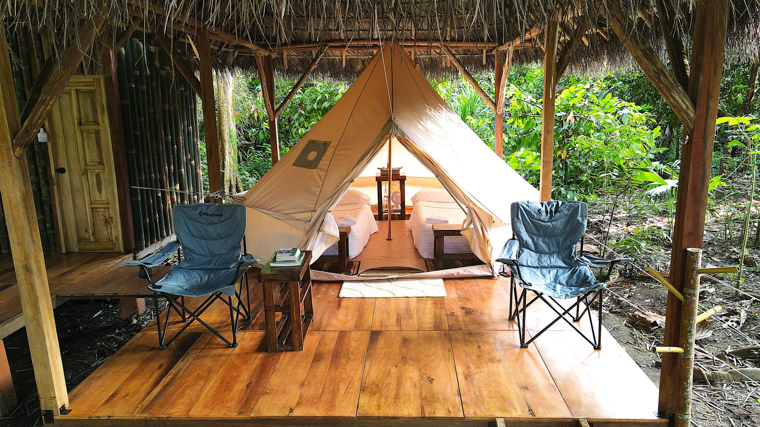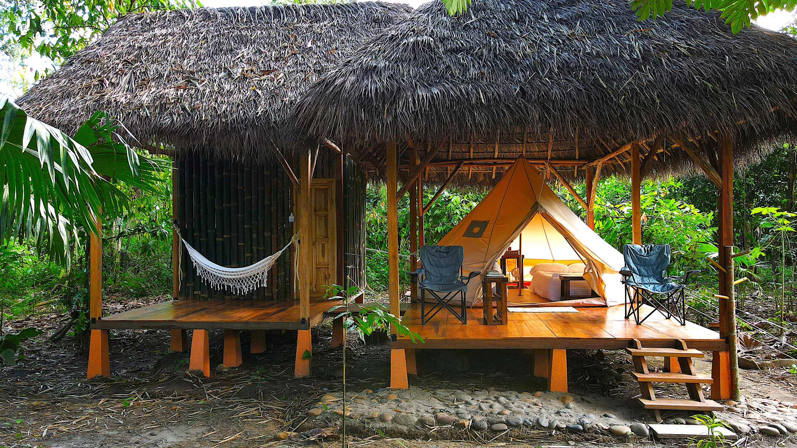 Today, we enjoy a scenic drive to the Arajuno River for a Class I section, which is known for its safe and mellow waters; perfect for our kayak adventure! We will use inflatable, sit-on-top kayaks, also known as duckies. Along the way, we will stop at a local village of only 40 people, located along the river and in the jungle. Here, you will be welcomed by this beautiful community, and treated to a specially prepared lunch of freshly-caught fish, jungle fruits, and other local delights! This is a unique experience and an opportunity to support a small, local community. After this splashy and fun day, you can relax at our private jungle glamping accommodations alongside the river, complete with en suite bathrooms. In the evening, enjoy the sounds of the Amazon or just relax in the hammocks while drinking some tropical beverages.