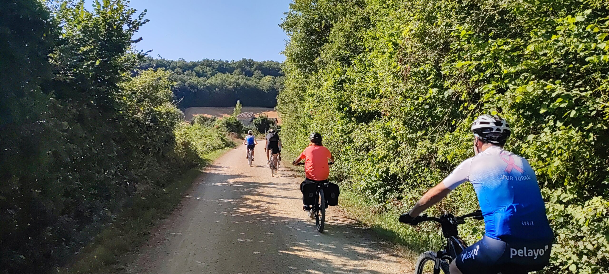 We begin pedaling out of Pamplona, the capital of Navarra, with the imposing silhouette of Mount San Cristóbal watching over our departure. Soon, the route leads us to the start of the Plazaola Greenway, a former railway line now transformed into one of the most beautiful cycling paths in northern Spain. The landscape shifts quickly from the bustle of the city to tranquil valleys and rolling hills, offering a refreshing contrast.