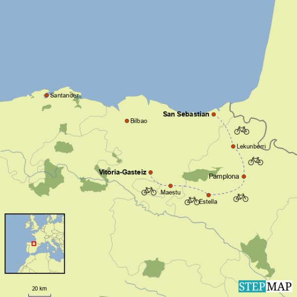 Basque Country Spain Self-Guided Bike Tour: Embark on a breathtaking cycling journey that begins in Vitoria, winding gently along the Vasconavarro Railway Greenway to Estella, where the route connects with the renowned Eurovelo 1. From there, you’ll pass through Pamplona before enjoying a smooth descent into San Sebastián along the scenic Plazaola Greenway. This unforgettable adventure spans three provinces and three vibrant capitals of the Basque Country and Navarra, offering a rich blend of culture, history, and natural beauty. Along the way, you’ll discover centuries‑old towns, sample world‑class wines from Navarra and Rioja, and savor the region’s celebrated Basque cuisine, from pintxos to hearty traditional dishes.With nearly the entire trip unfolding on tranquil Greenways, paths, and bike lanes far from busy roads, it’s the perfect way to ride at your own pace, surrounded by nature, as you journey from the rolling Llanada Alavesa all the way to the sparkling sea.