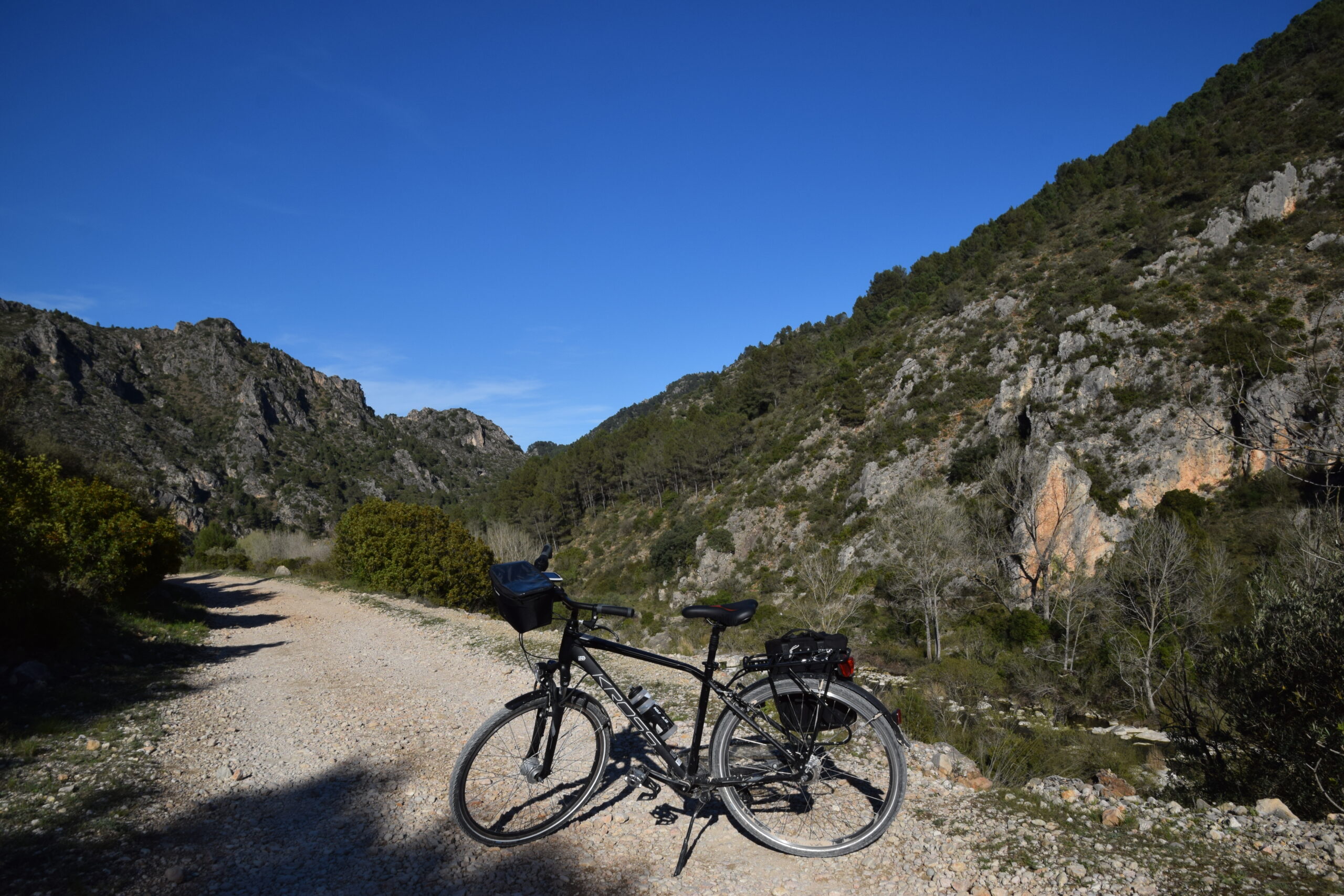 Today’s ride brings us back toward the sea, with Gandía as our destination. The route follows the Serpis River, winding gently through valleys once traversed by the historic railway to Villalonga. This scenic stretch offers a pleasant rhythm, with the river guiding your path between lush landscapes and rolling hills.