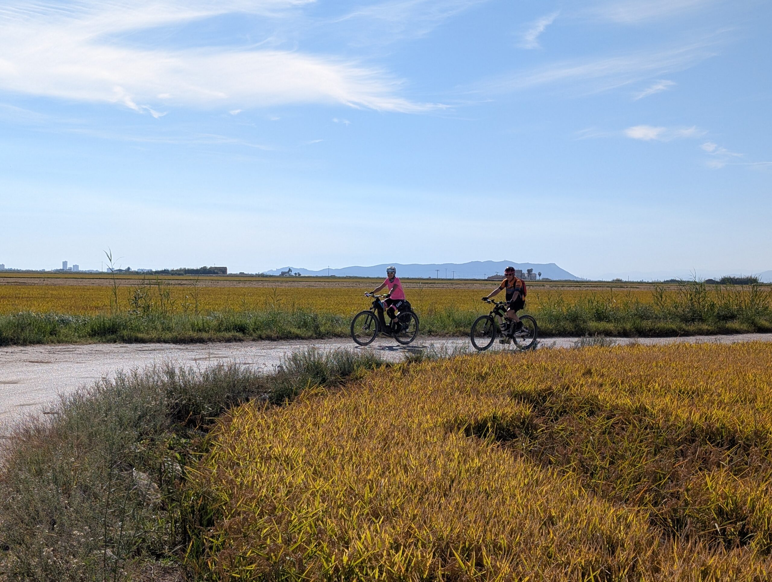 After breakfast in Gandía, today’s ride takes you on a beautiful journey through wetlands, orange groves, and fruit orchards, offering a refreshing change of scenery. As you pedal, the landscape gradually transitions into the first rice fields of the Albufera Natural Park, a region famous for its biodiversity and traditional agriculture. Your destination is Cullera, where you’ll be greeted by the dramatic sight of a massive stone hill crowned by its historic castle, overlooking the town and the sea. Below, a long stretch of golden beach invites you to relax and enjoy the Mediterranean atmosphere—a perfect reward after a day of cycling through such varied landscapes.